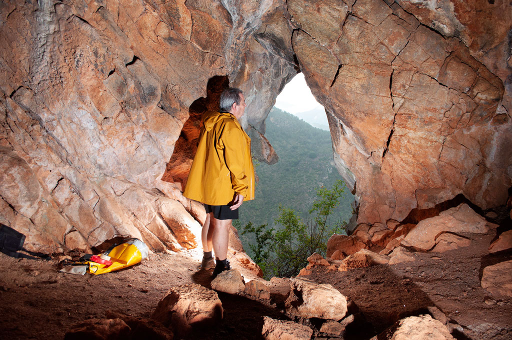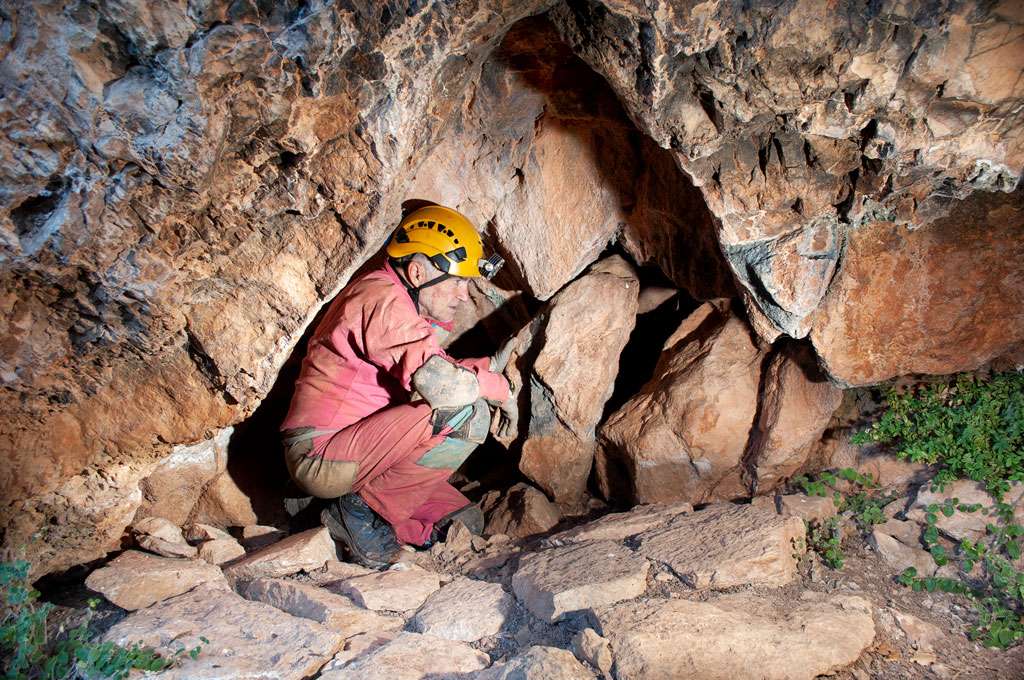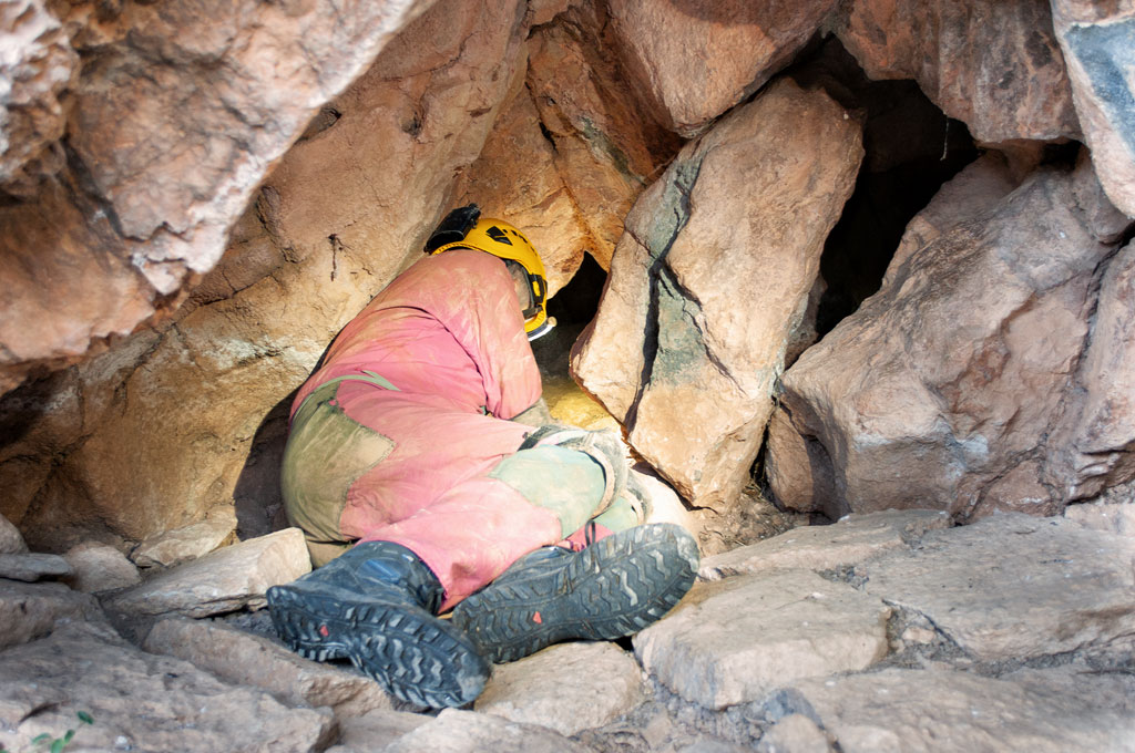 Així que arribem a la paret ens trobem una petita cavitat que no estava catalogada a l'Espeleoíndex i que en diem la Tuta Petita de Menús.