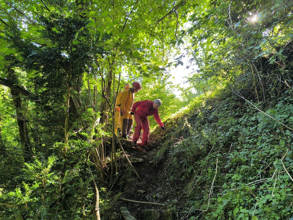Continuant avançant cap al S trobem una fissura a la nostra esquerra (P-7,60) que cau també a la balma principal (C).