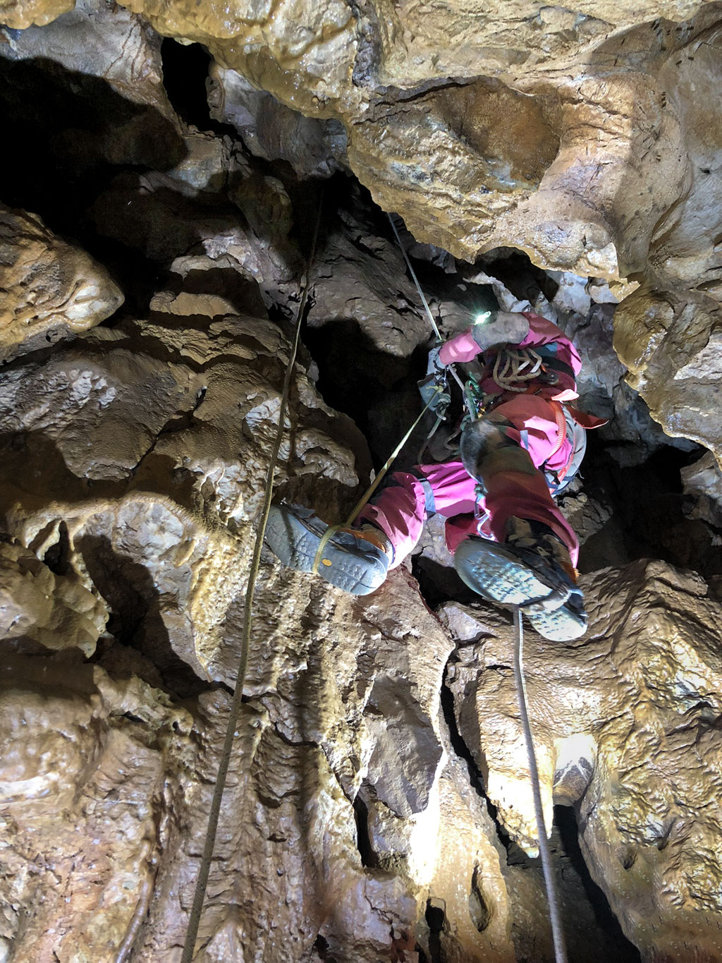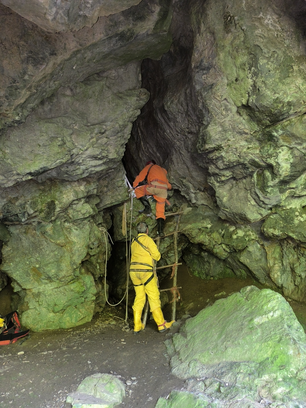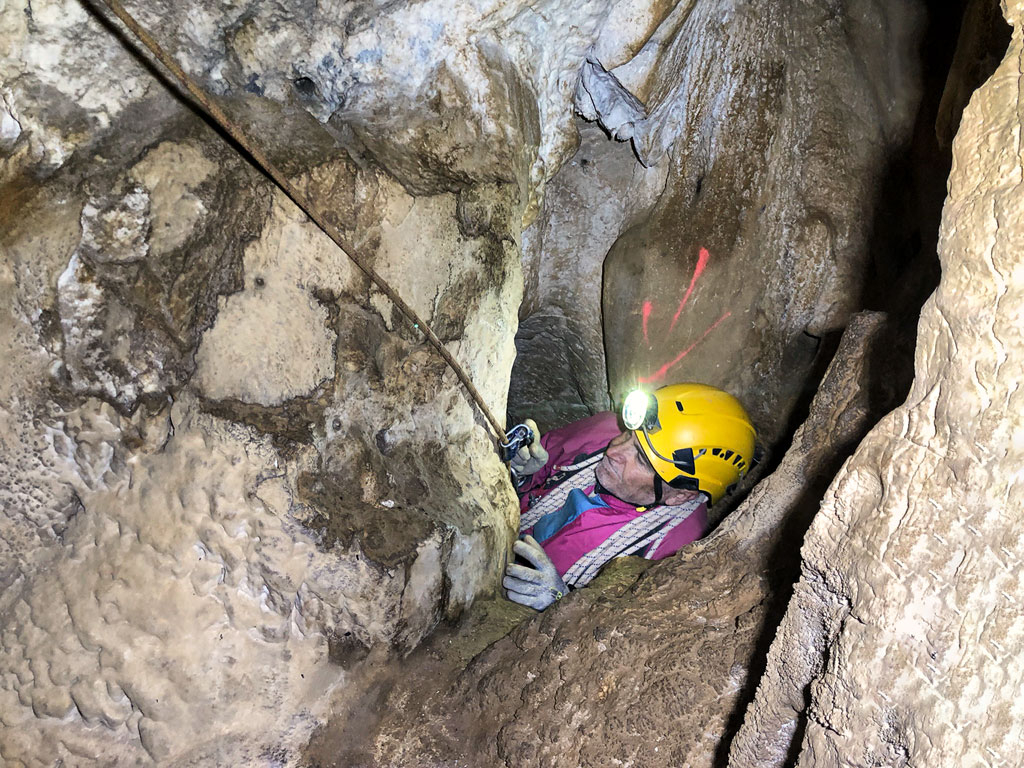 El conducte de l'esquerra no és més gran, impedint l'exploració l'estretor del pas, encara que també es veu que continua.