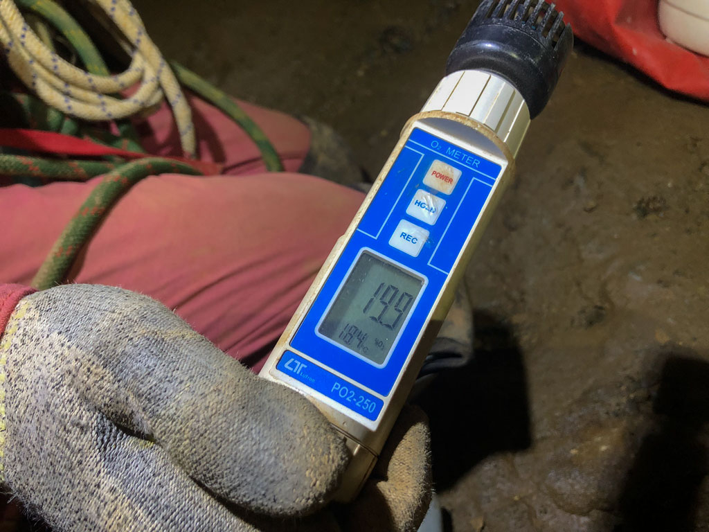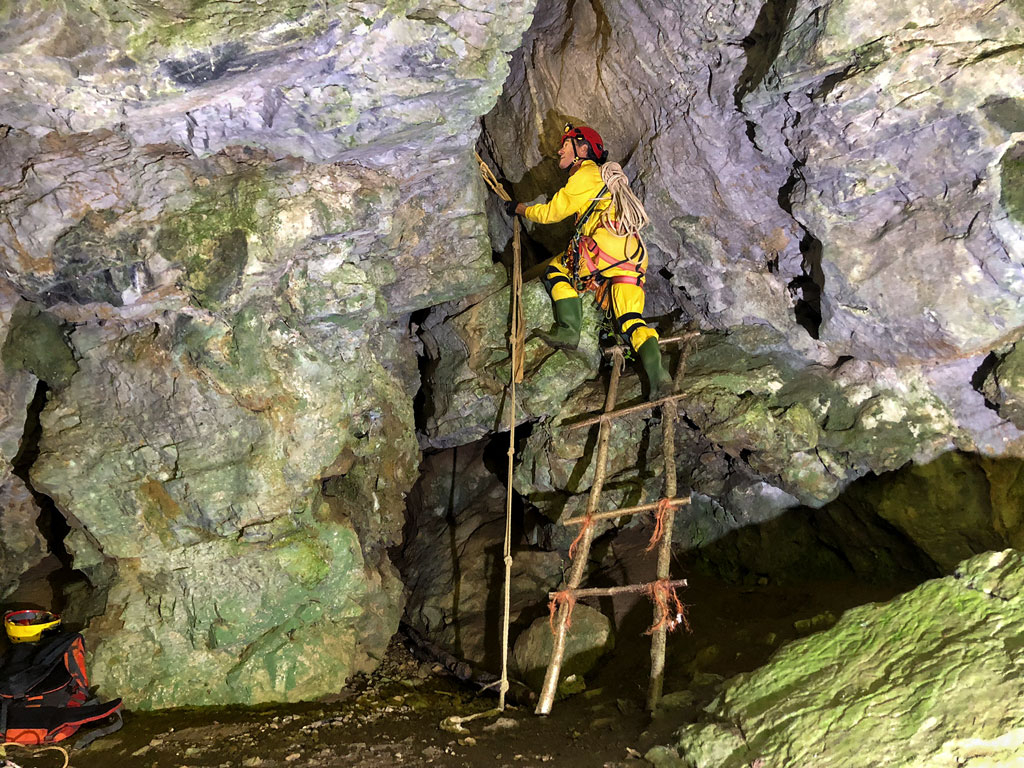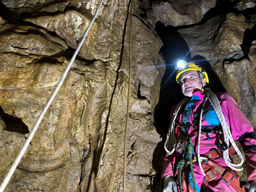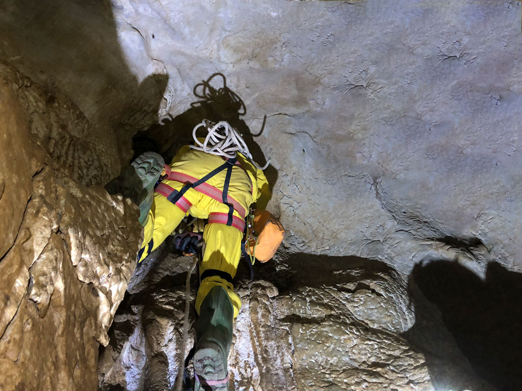 El conducte de l'esquerra no és més gran, impedint l'exploració l'estretor del pas, encara que també es veu que continua.