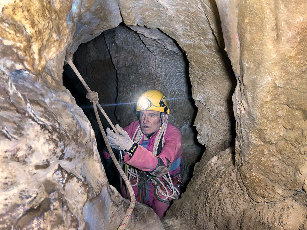 Arribats a la capçalera del pou (26), aquest s'eixampla i continua cap a dalt 5 metres més en cúpula amb un interrogant.