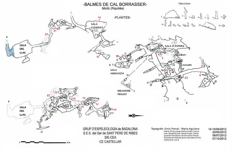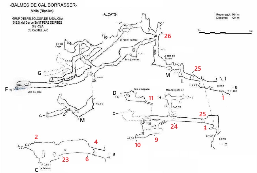 La cavitat posseeix tres boques, assenyalades a la planta de la topografia com a 1,2 i 3.