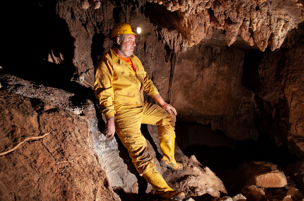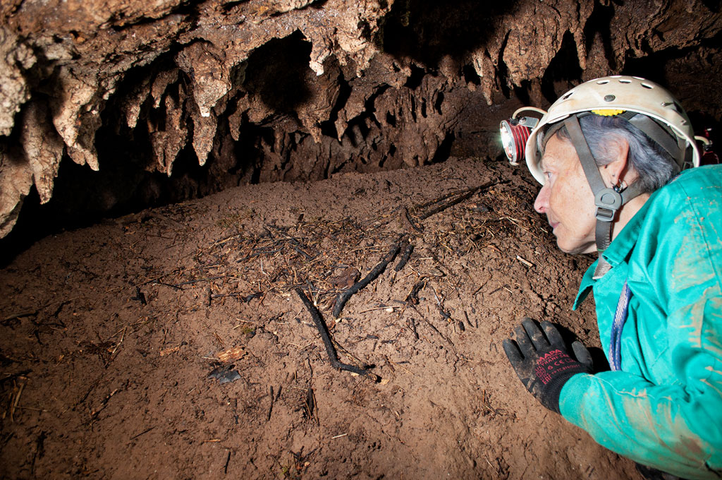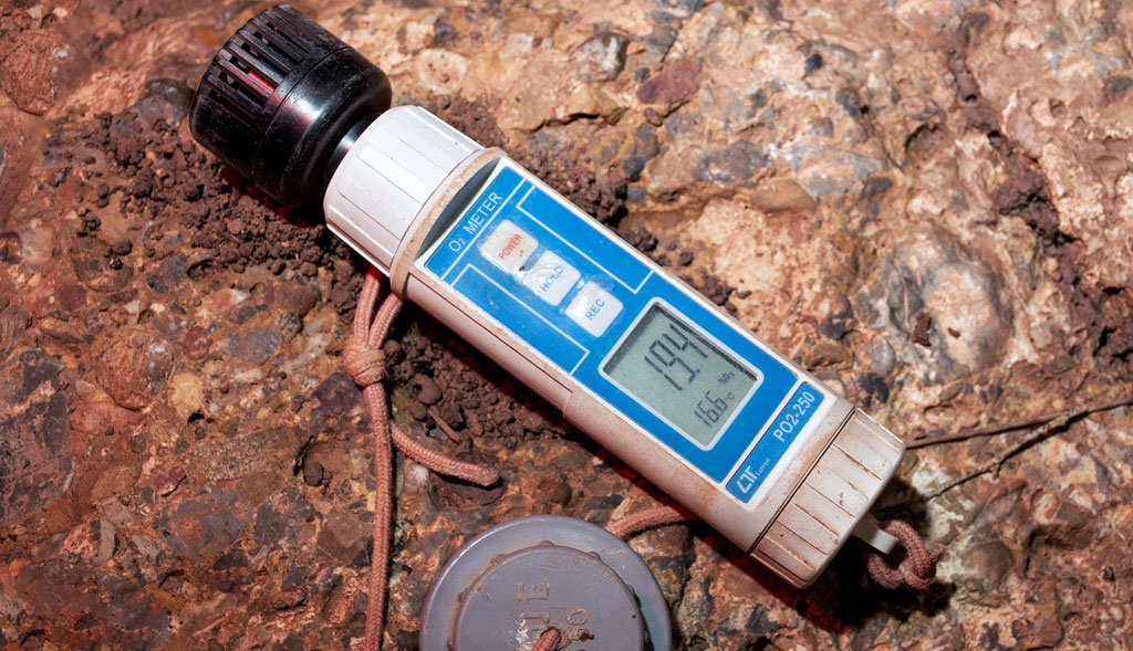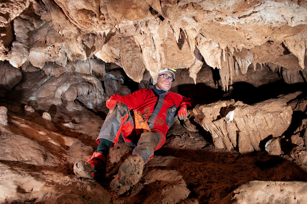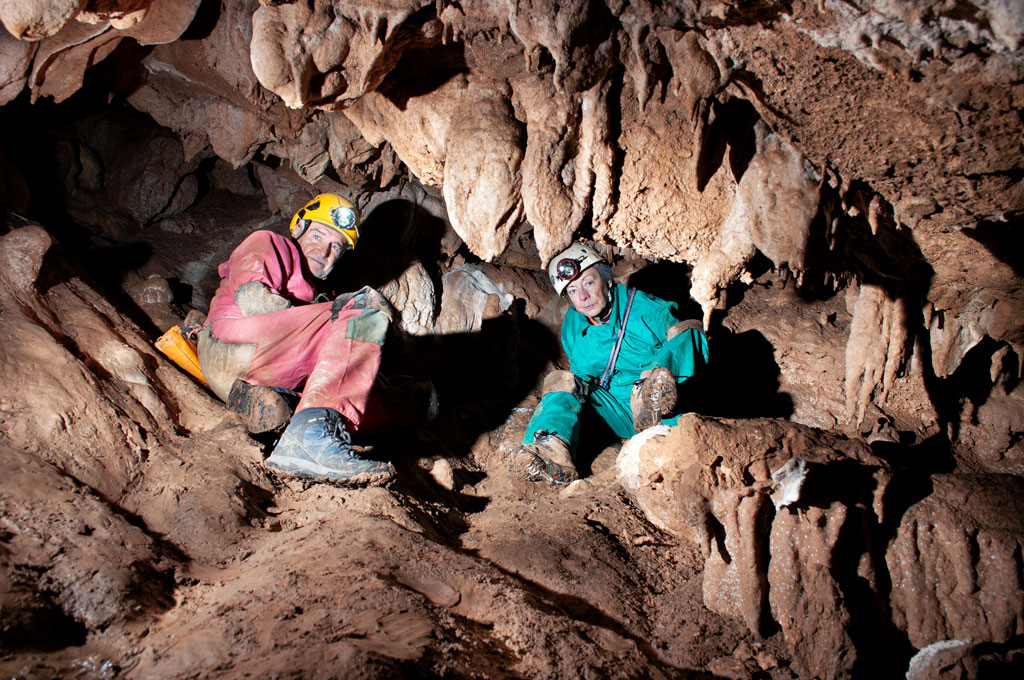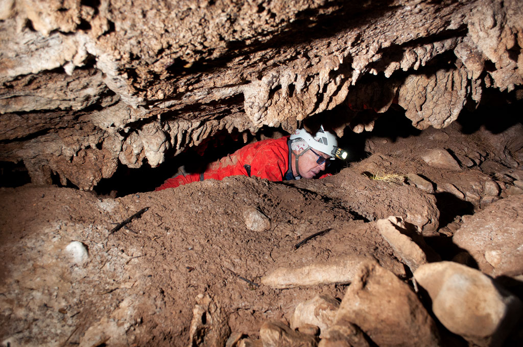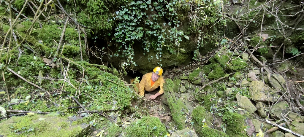 Hi ha una petita rampa fangosa per baixar l'esfondrament, on vam instal·lar una corda.