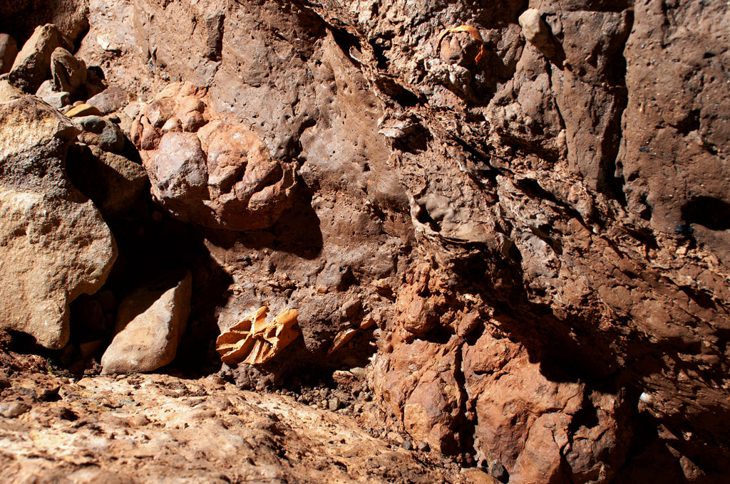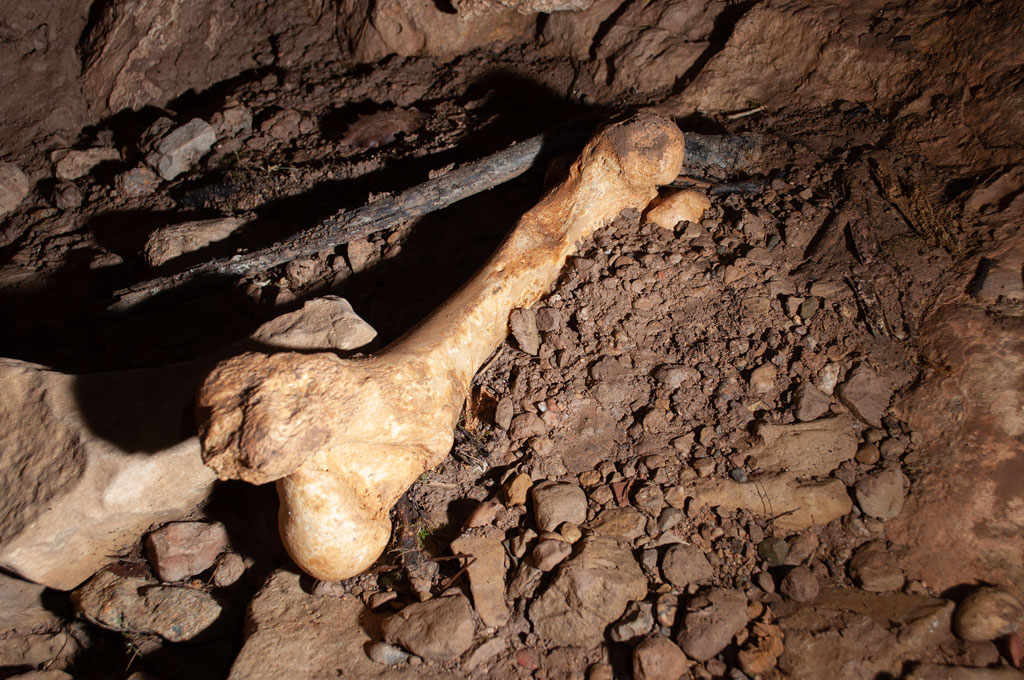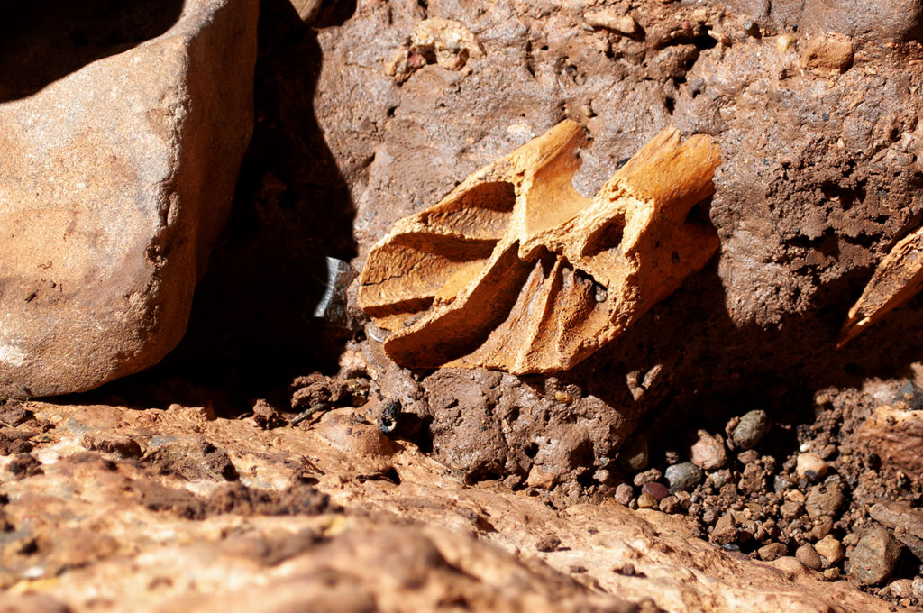 Un detall d'uns ossos que treien el cap des d'un re-ompliment.