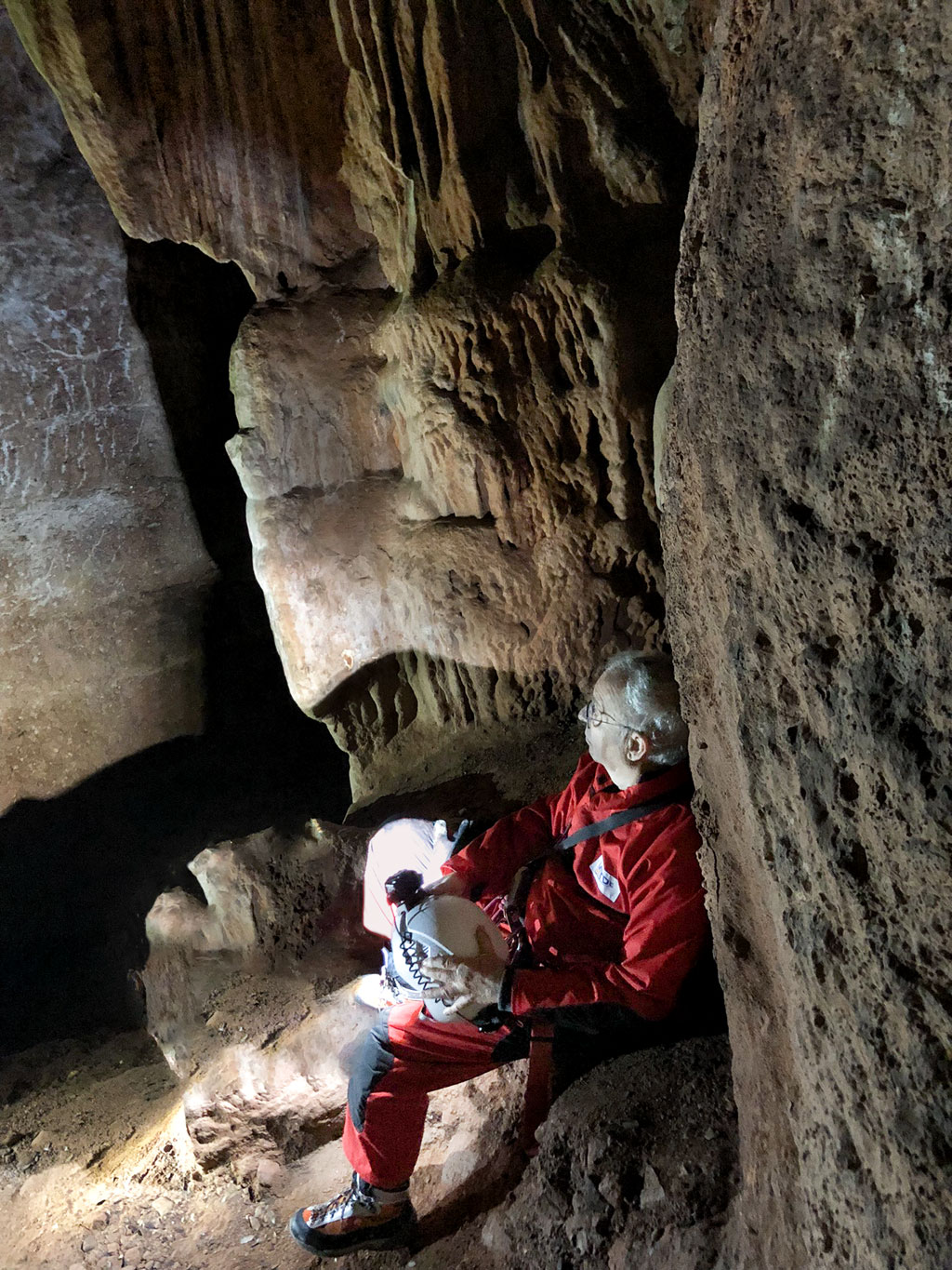 En Manel Alfaro, amic i company de fatigues d'en Toni i la Dolors durant les primeres exploracions del Sistema Arañonera, es volia posar al dia en la practica de l'espeleologia desprès de quaranta anys d'inactivitat.