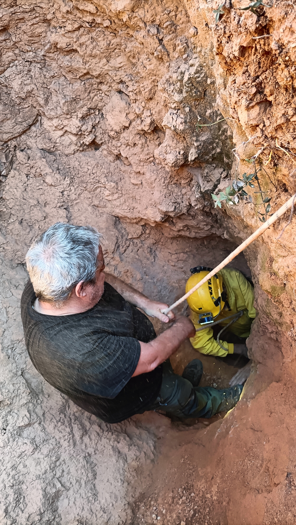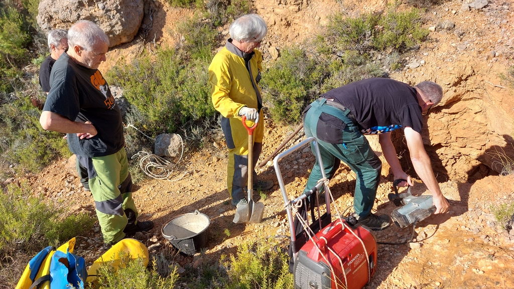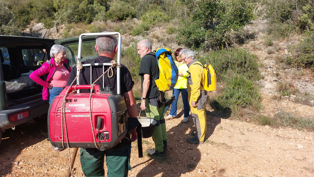 Certament va molt ben equipat per fer feines de desobstrucció, aquí el veieu d'esquena carregat amb un generador.