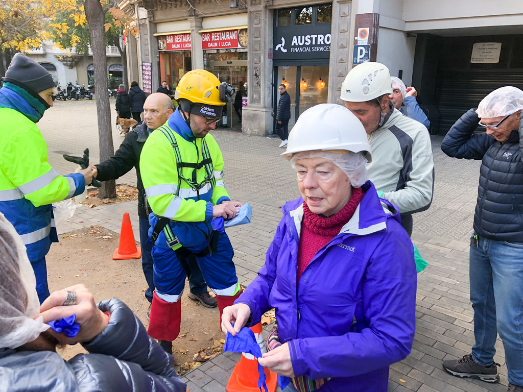 Un cop acabada la presentació, ens cedeixen un casc, que haurem de tornar i un parell de guants d'un sol ús.