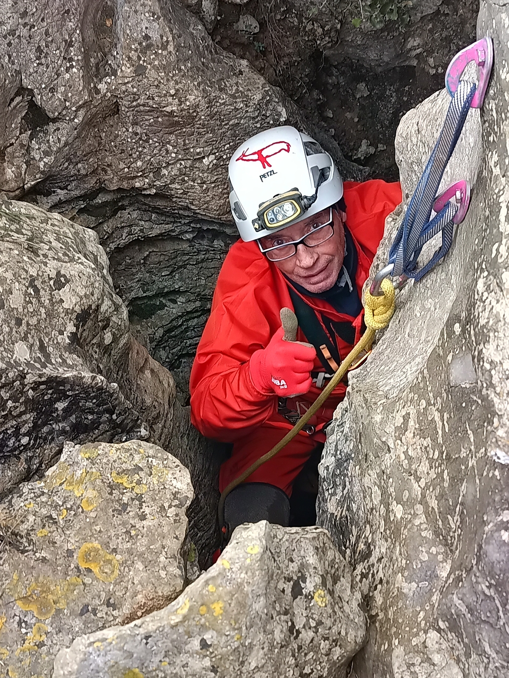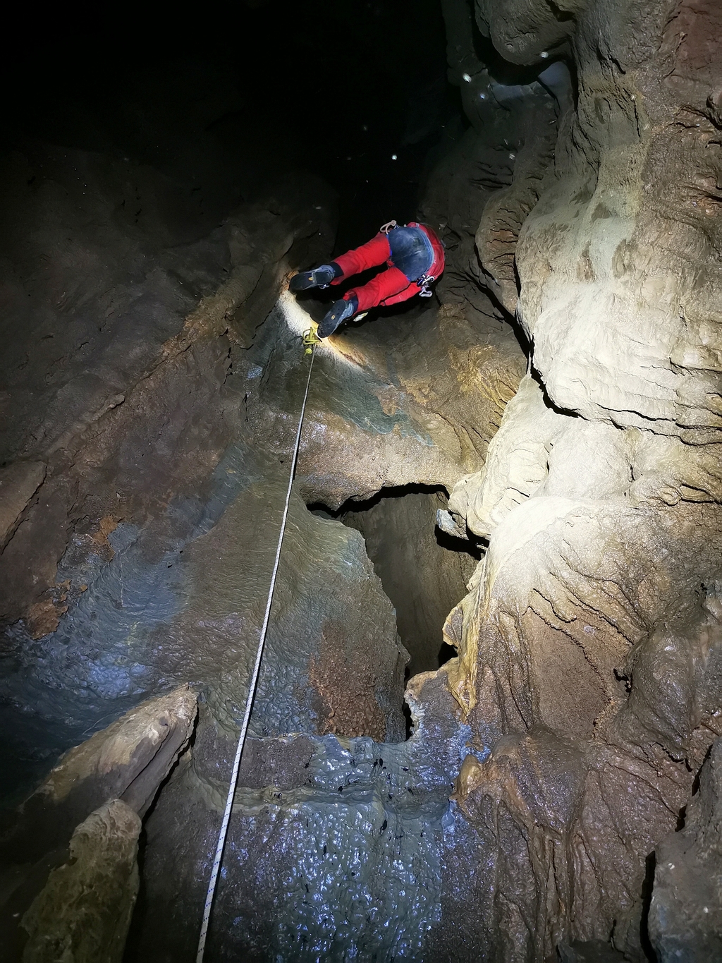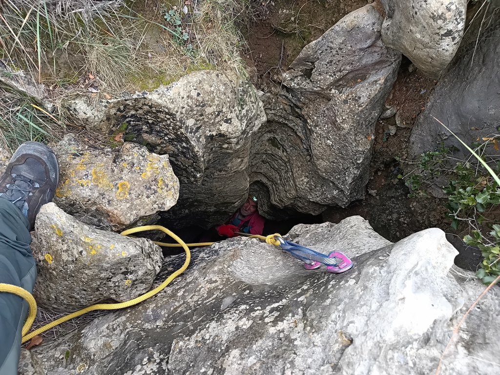 L' última vegada vaig deixar escrit que amb un 50 n'hi havia prou. https://espeleodijous.cat/index.php?node=138 de fet, tant aquell dia com aquest dúiem la mateixa corda groga marcada amb un 49