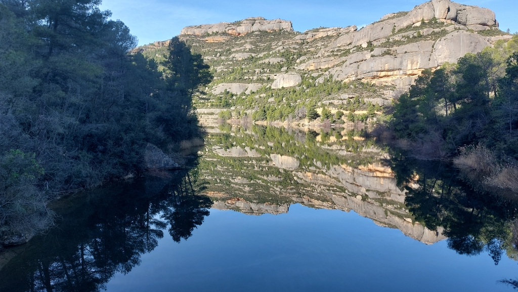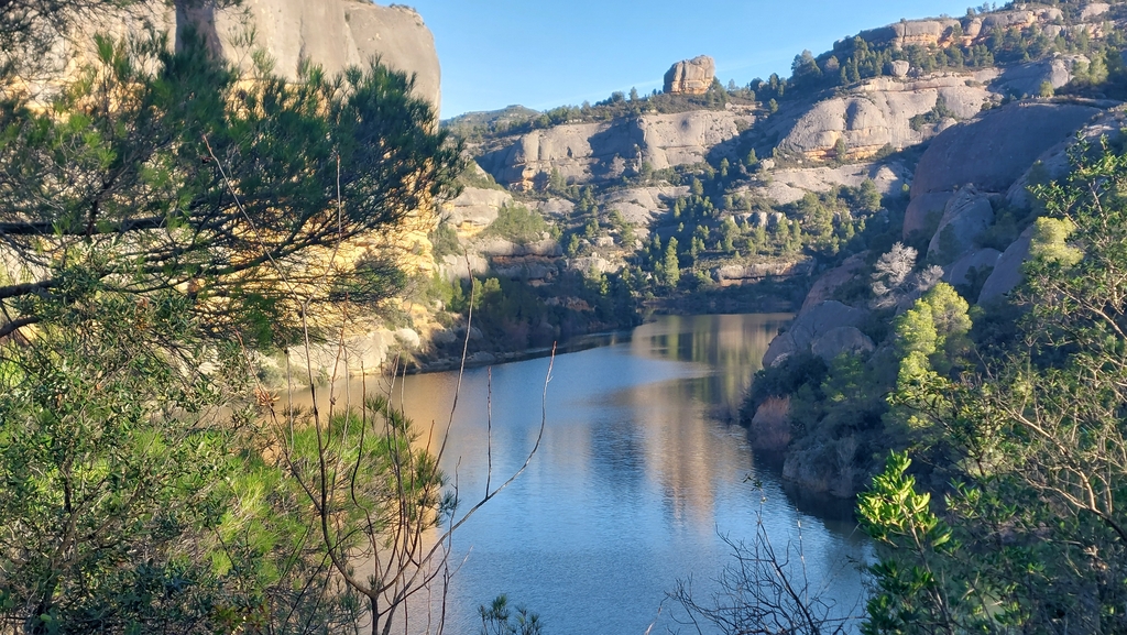 Vam pujar fins al costat bo de la presa i mentre ens preparàvem va aparèixer una furgoneta de l'ajuntament, un home en va baixar, va donar un cop d'ull a la porta metàl·lica que dona pas a l'interior de la presa, va recollir tres ampolles de plàstic aixafades i sense dir res més va a marxar.
