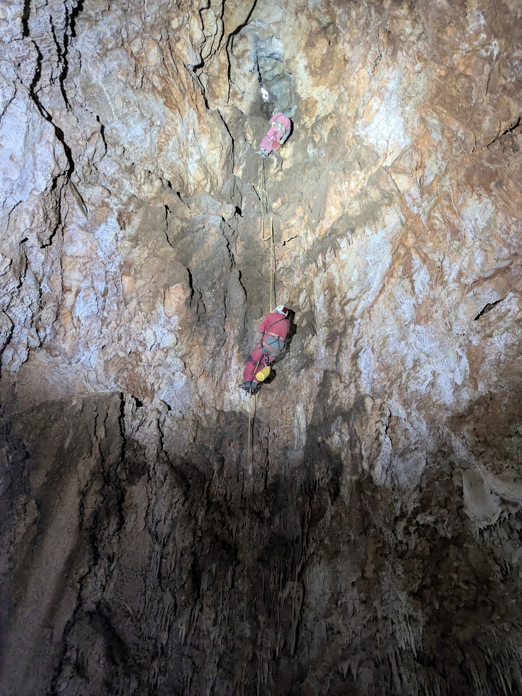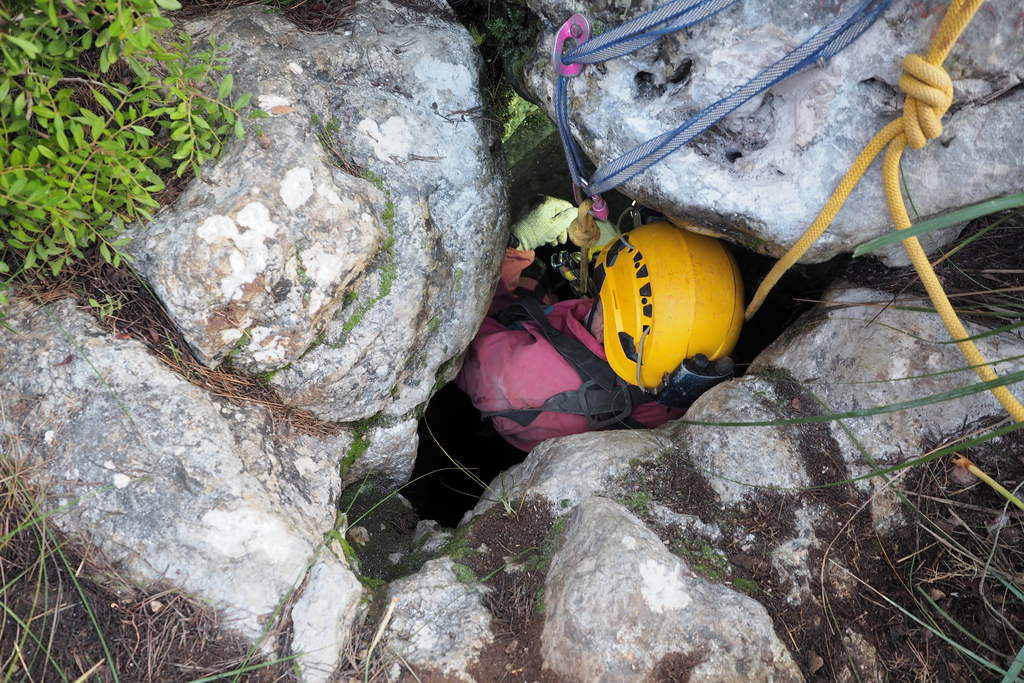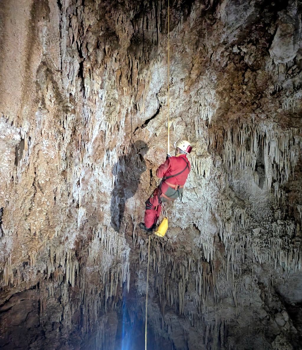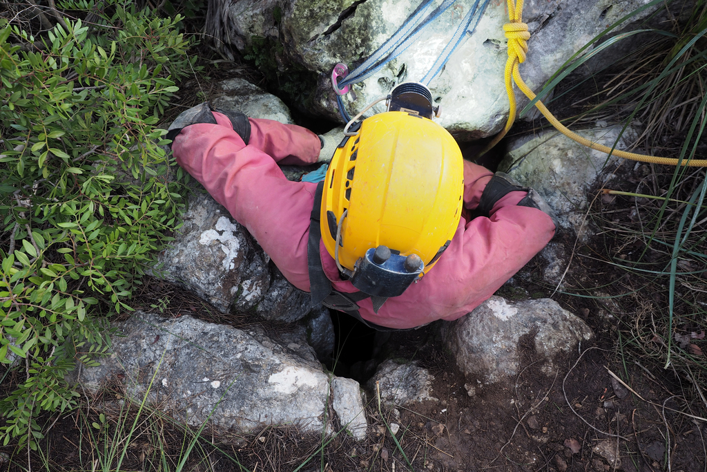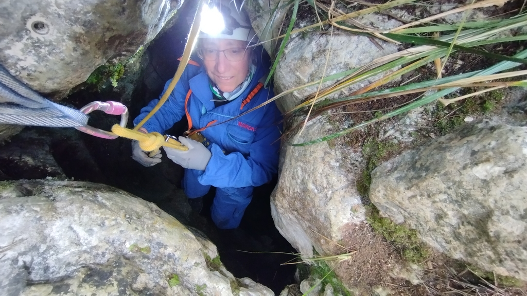 Vam utilitzar una corda de 48, i en va sobrar, i d'instal·lacions en calen quatre amb placa i cargol per spits, a part de la boca hi ha 2 reinstal·lacions al pou.