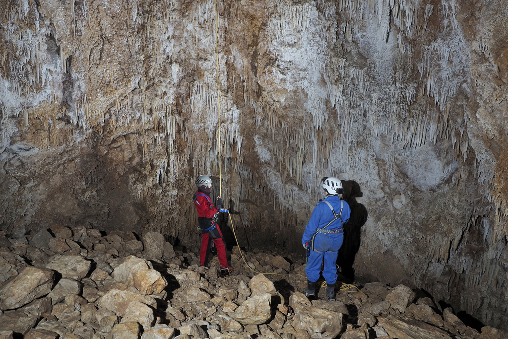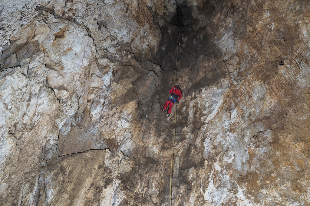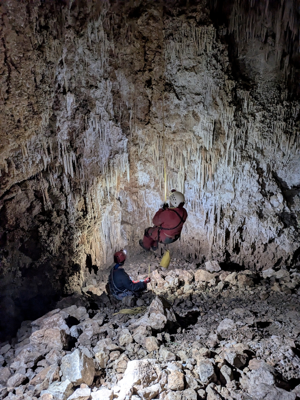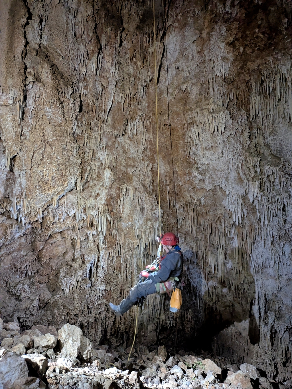 Vam utilitzar una corda de 48, i en va sobrar, i d'instal·lacions en calen quatre amb placa i cargol per spits, a part de la boca hi ha 2 reinstal·lacions al pou.