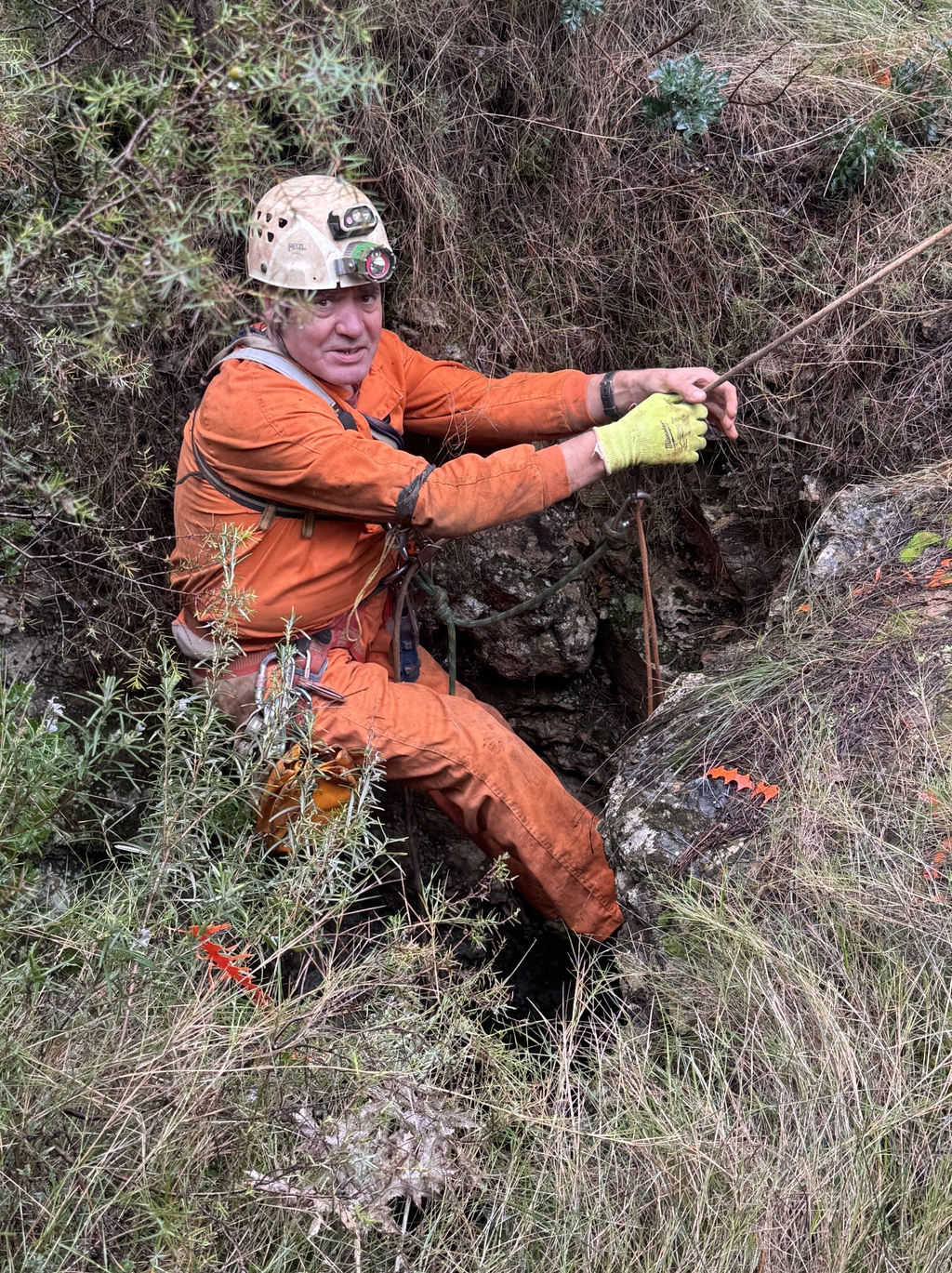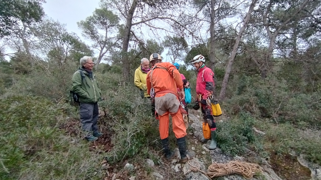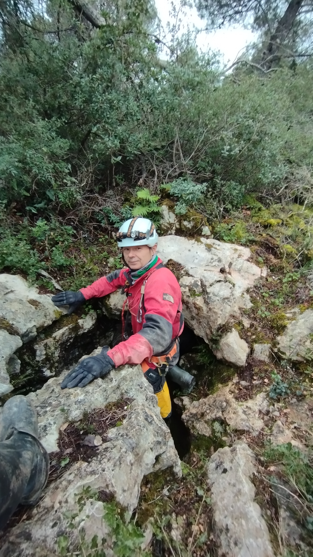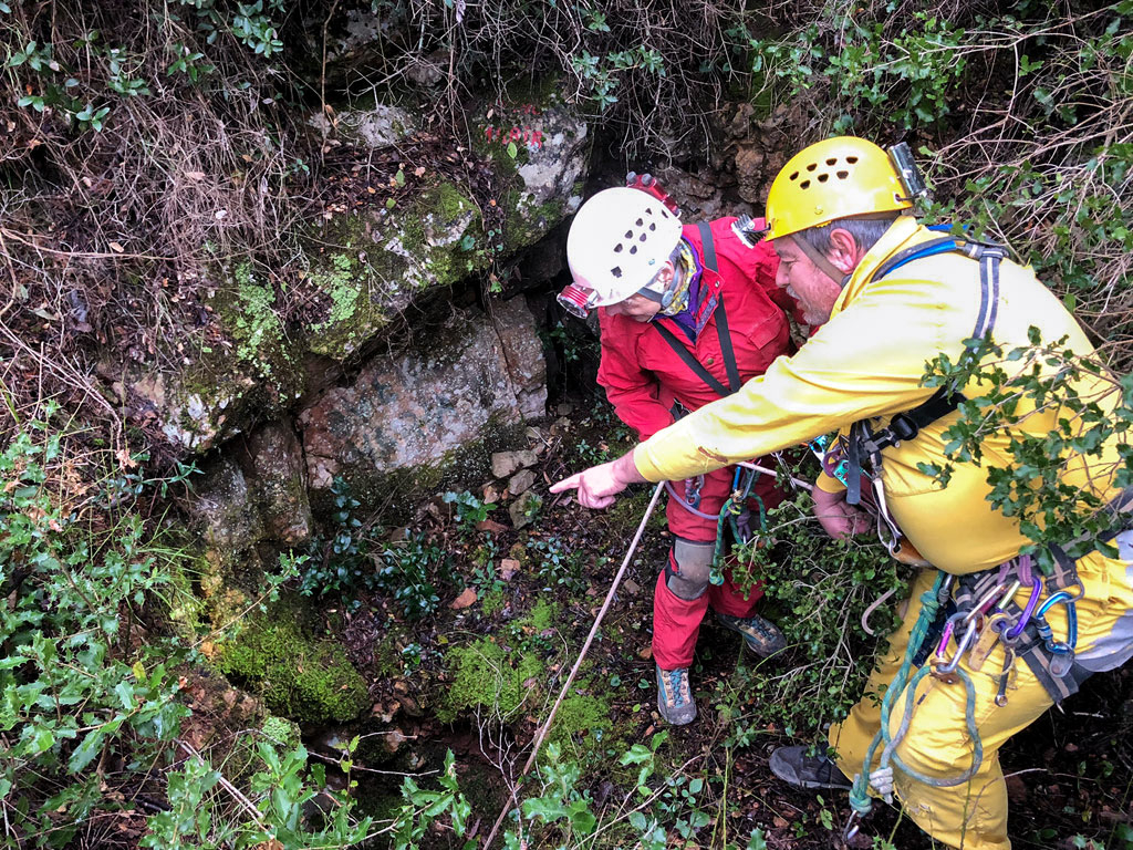 Vam dur un 20 que vam lligar a un abret i un mosquetó i placa per spit a la vertical