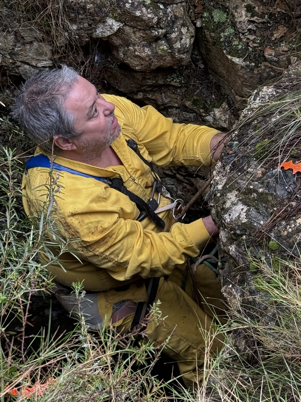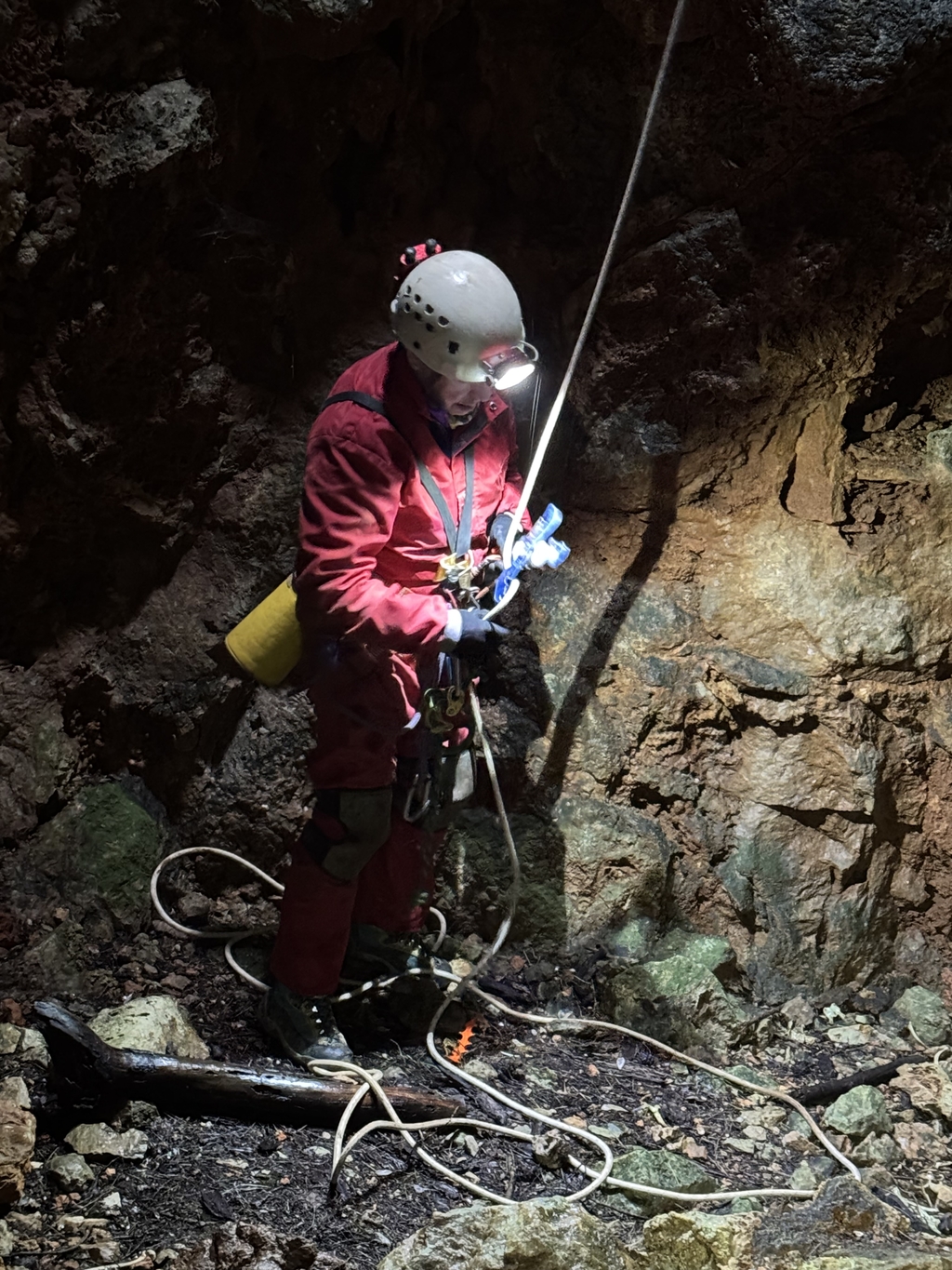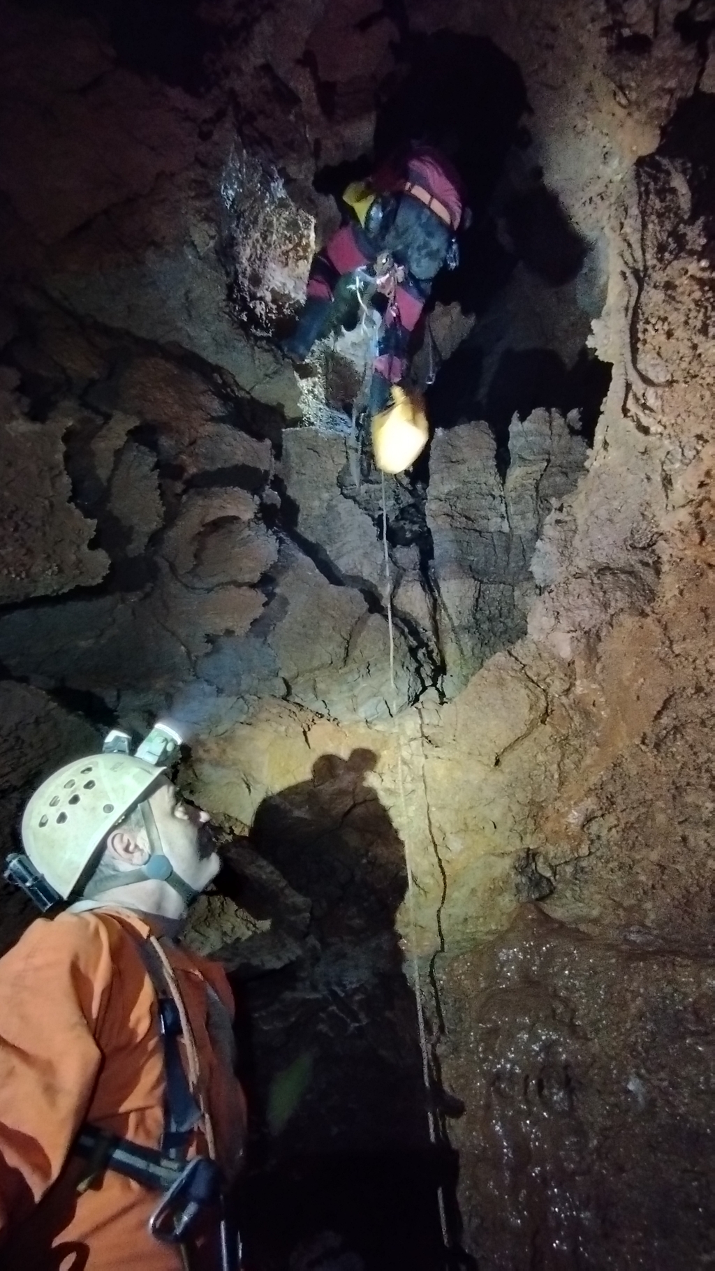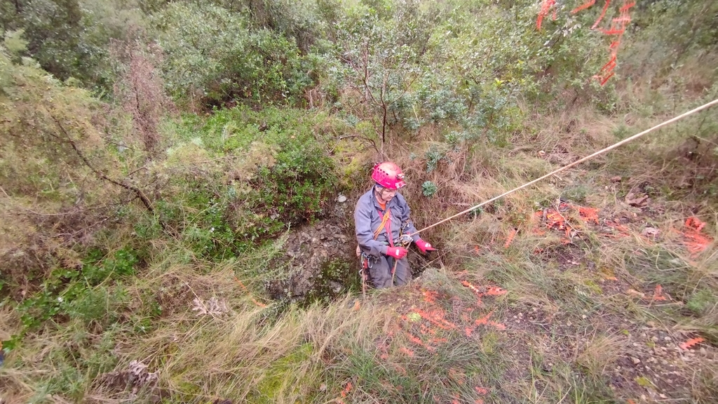 Vam dur un 20 que vam lligar a un abret i un mosquetó i placa per spit a la vertical