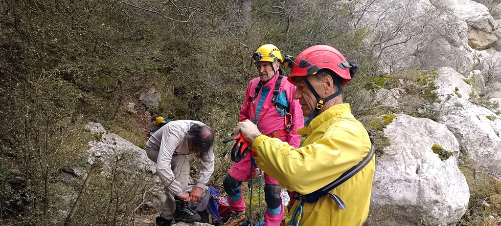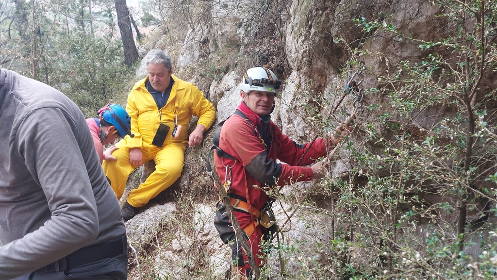 Vam anar de pet seguint el camí i un corriol nou que duu directament on l'Espeleoíndex situa la cavitat. Però el tros de cinglera que vam trobar, cap dels que ja hi havien estat no la recordaven.