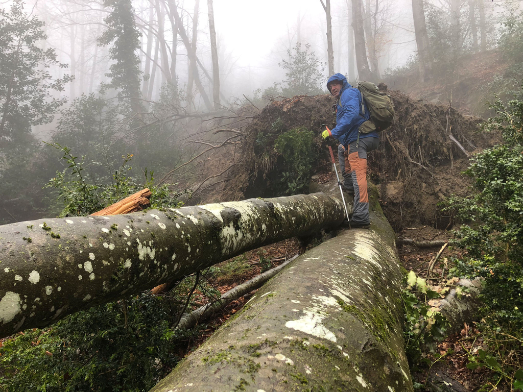En un parell de llocs, la pista queda tallada per arbres caiguts.