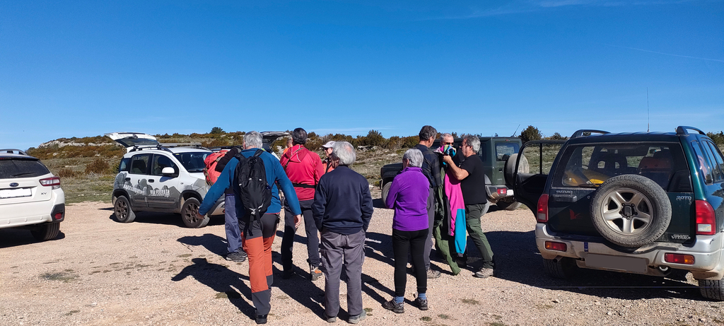 Vam deixar els cotxes en un replà a l'entrada de la pista que passa per davant l'observatori. A partir d'aquí fem l'aproximació fins al pic de Corona. En aquest punt ens separem els dos grups: 6 cap la grallera petita d'Alsamora i 6 més a la grallera de Corona. Un espeleòleg és va quedar fora gaudint de les magnífiques vistes d'un magnífic dia.