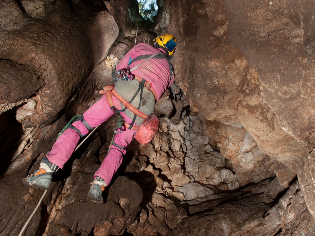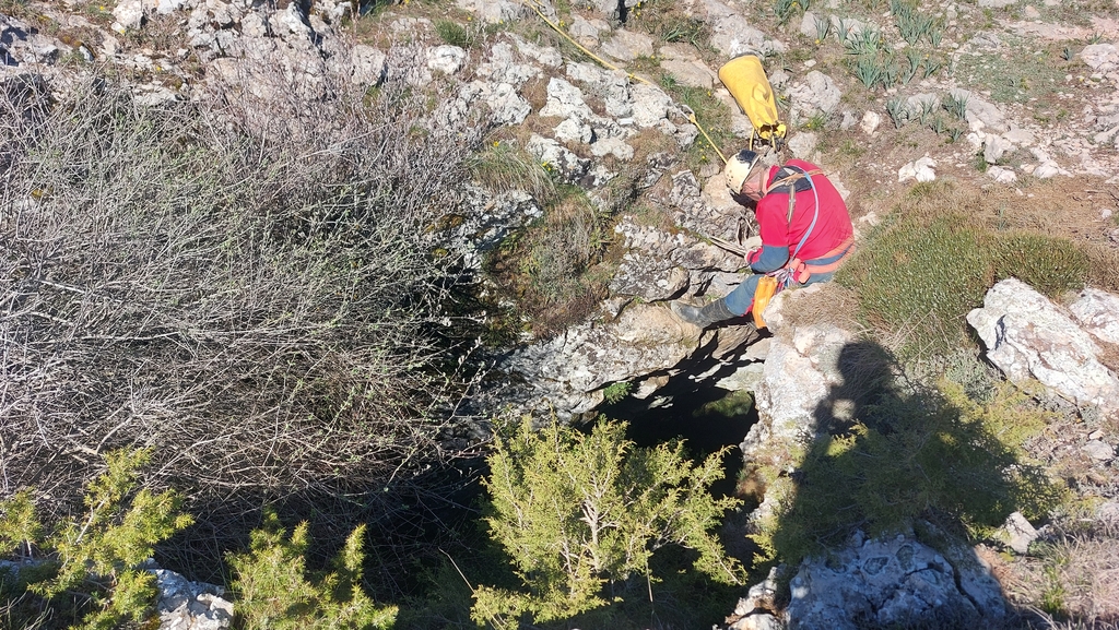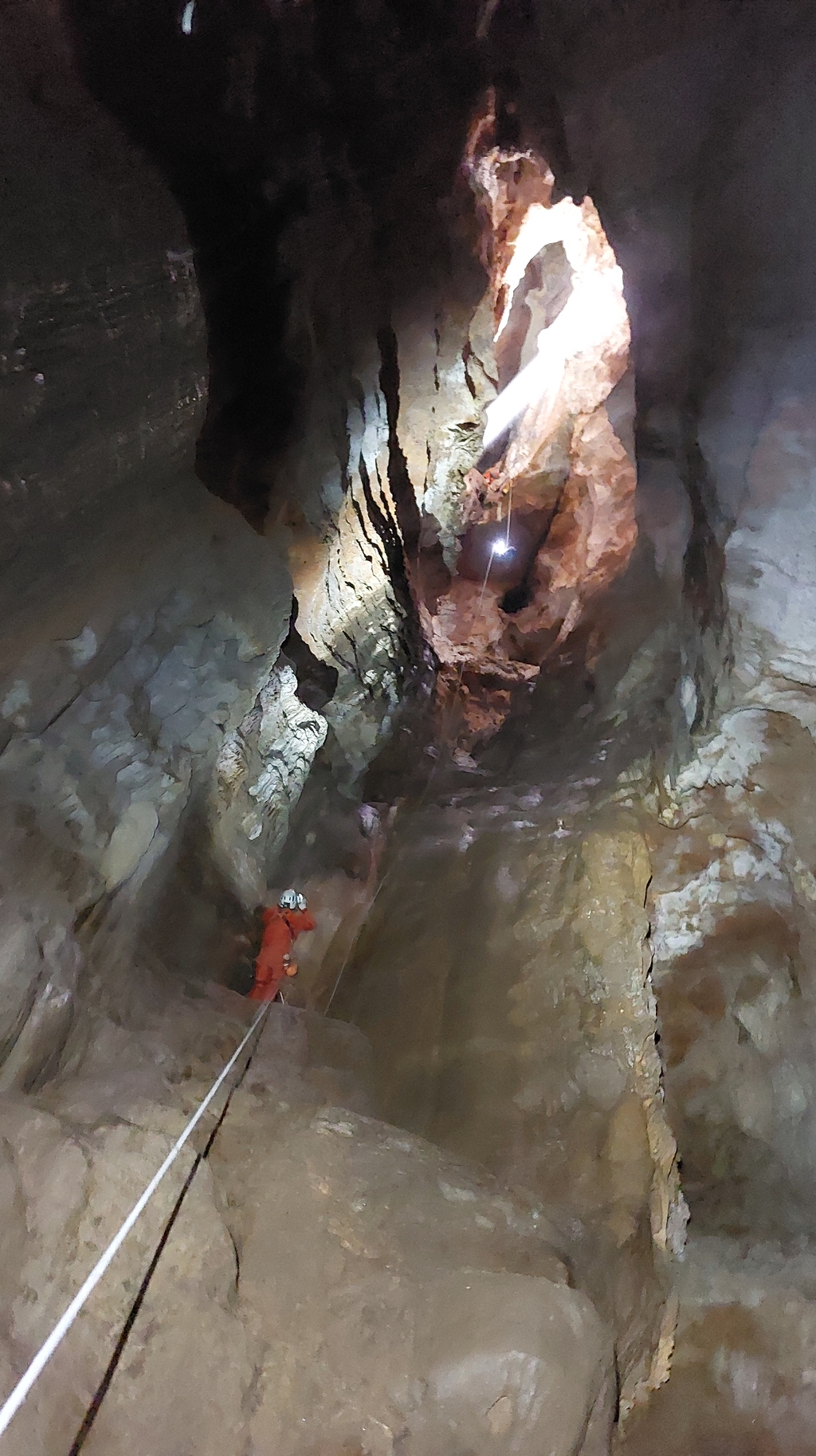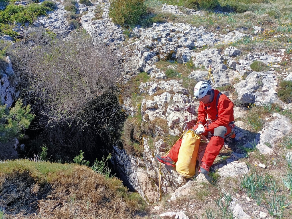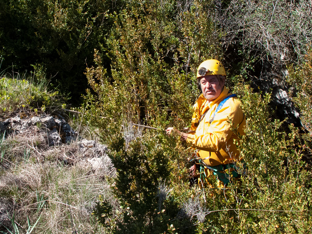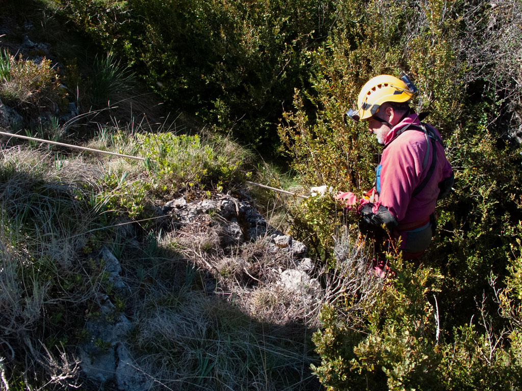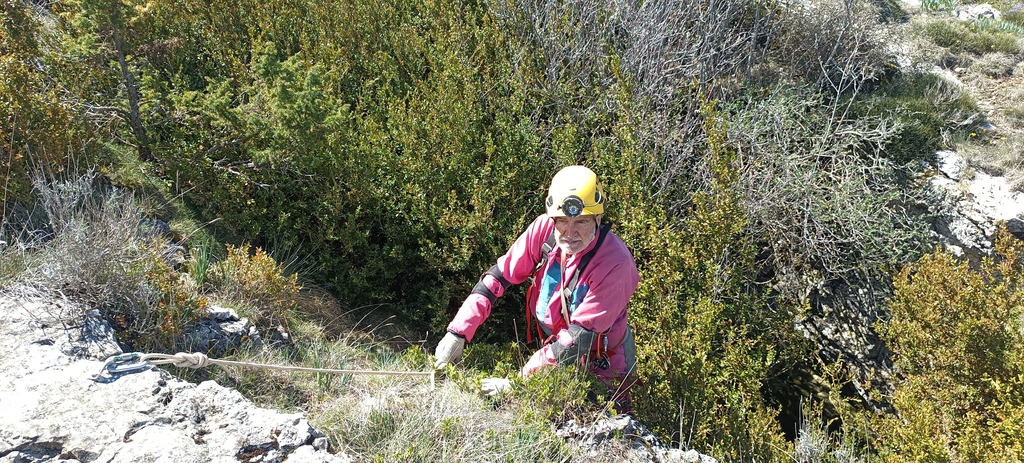 Vam dur un 25, vam trobar un spit i més avall vam lligar en un boix, però mentre pujàvem vam veure a l'altra banda i al mig del pou un parell d'spits, ja a fora, a la boca en vam trobar un parell més i més nous a la banda oposada de per on havíem baixat.