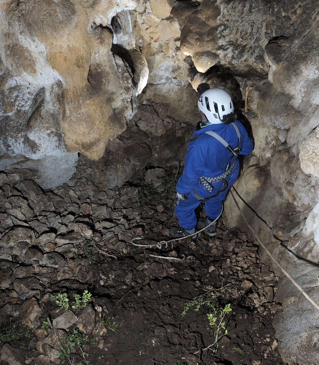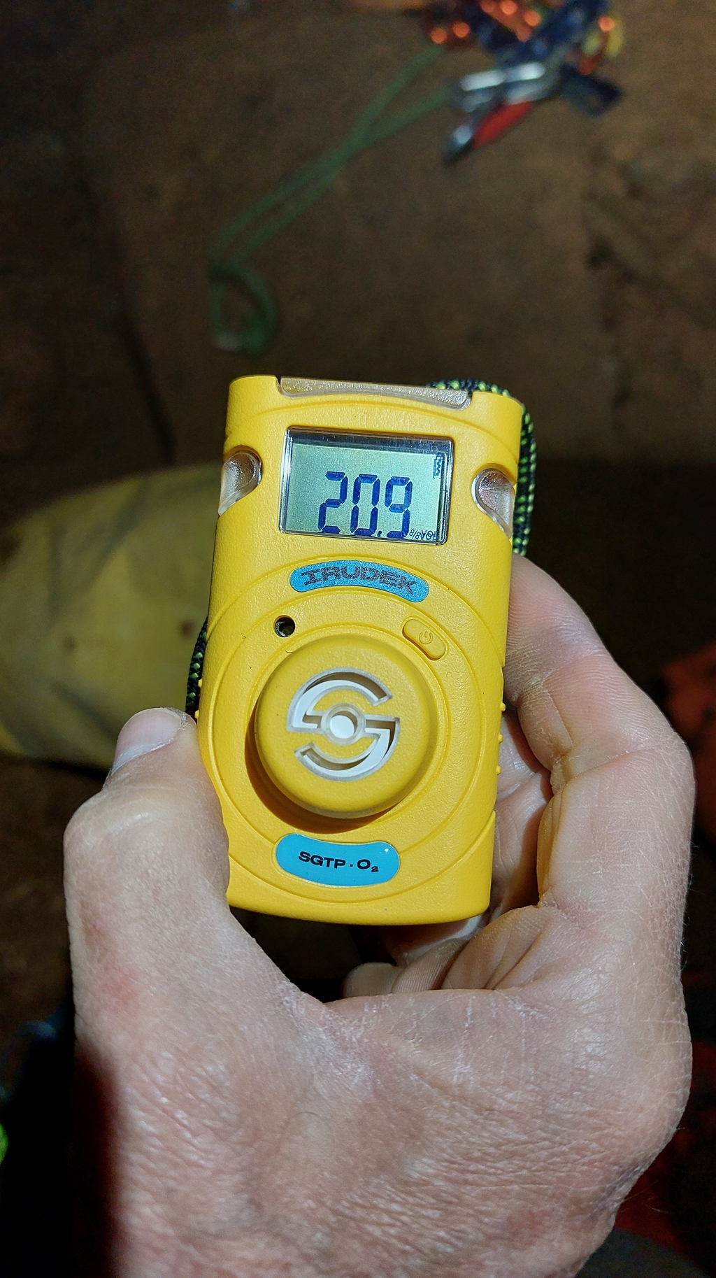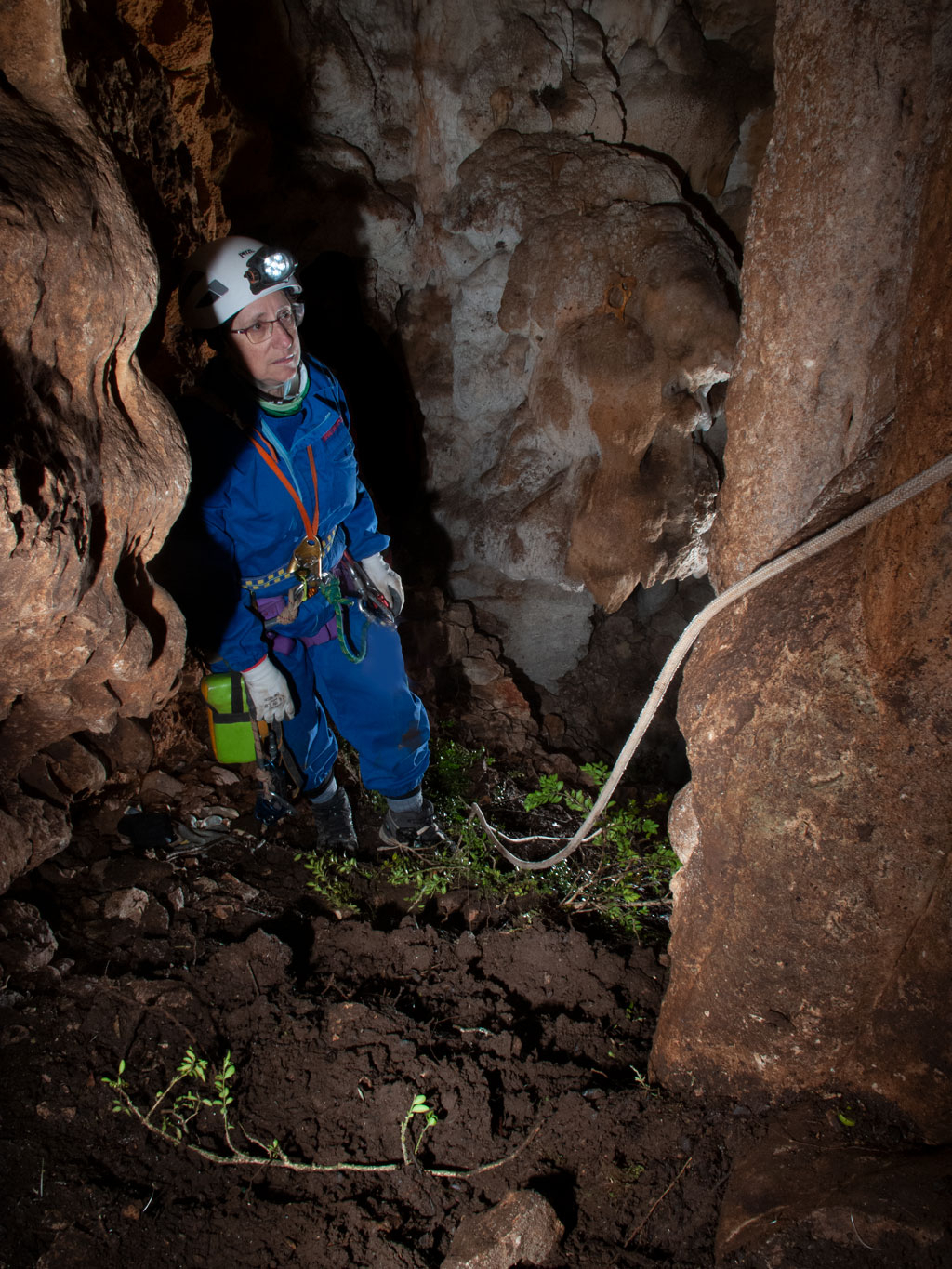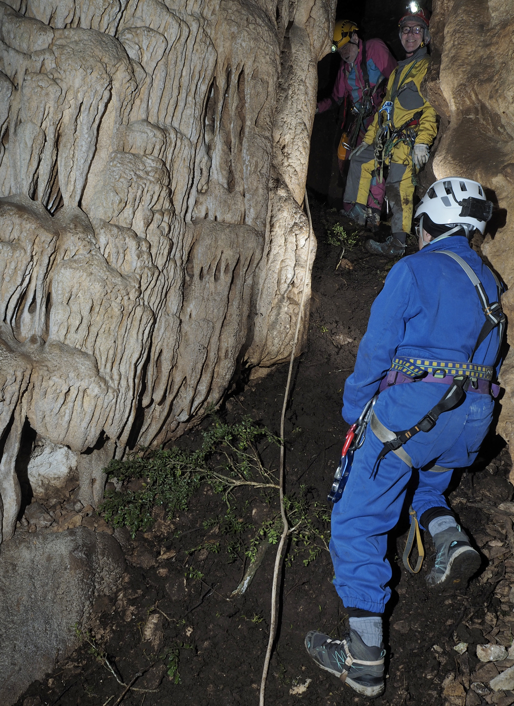 El primer en accedir-hi va ser el Francesc que s'ho va mirar i va decidir iniciar el retorn. A continuació en Pere i en Lluís van posar una corda utilitzant tres spits que van trobar a l'entrada del pas estret i en Pere es va introduir en el pou i en qüestió de minuts ja es va adonar que no podia continuar. Els que li anàvem al darrera Lluís i Mari vam prendre la mateixa decisió.